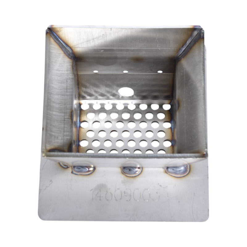 Assieme cestello braciere in acciaio AISI 430, con spessore della lamiera di 3mm - il foro per la resistenza di accensione e posto nella parte posteriore del braciere - verificare correttamente le dimensioni prima di effettuare l'ordine.