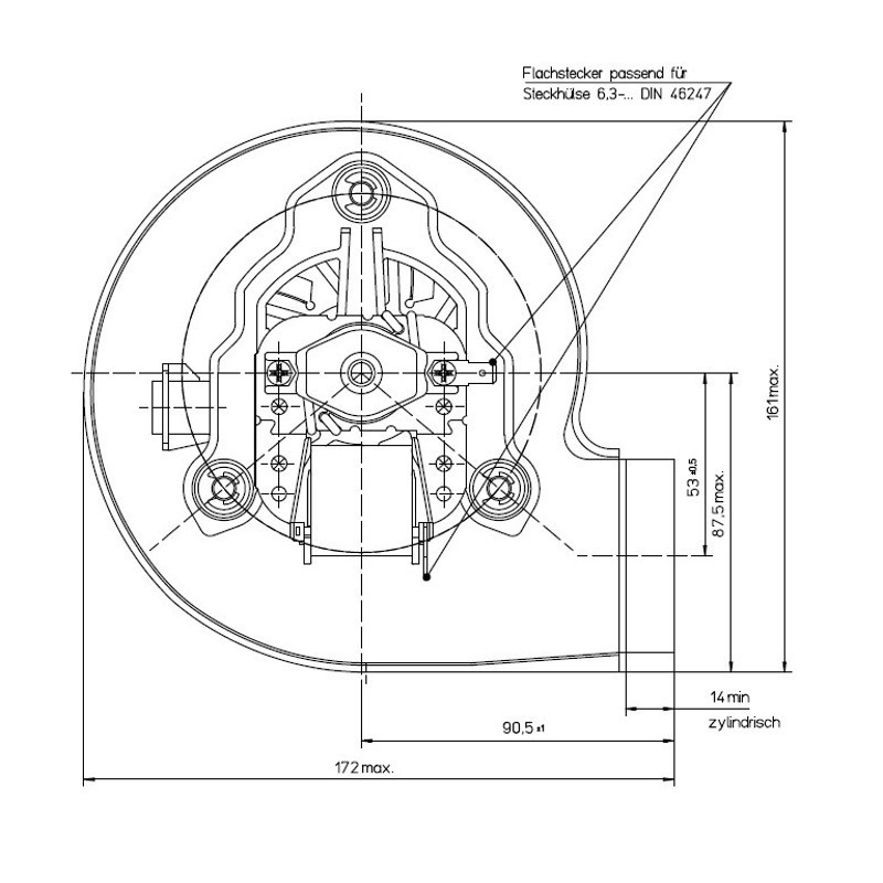 Di dimensioni lunghezza totale 172mm, diametro bocchetta uscita aria 56mm.