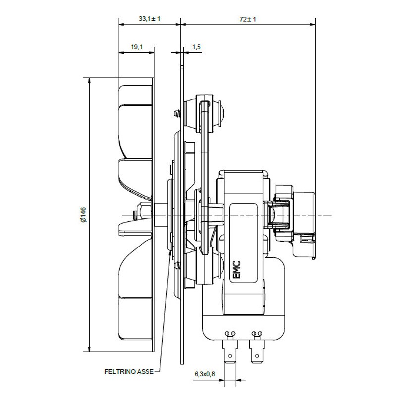 Estrattore, aspiratore fumi ECM FIME ES150P017 - VGRE15521017 progettato per l’impiego in stufe a pellet e caldaie a biomasse.