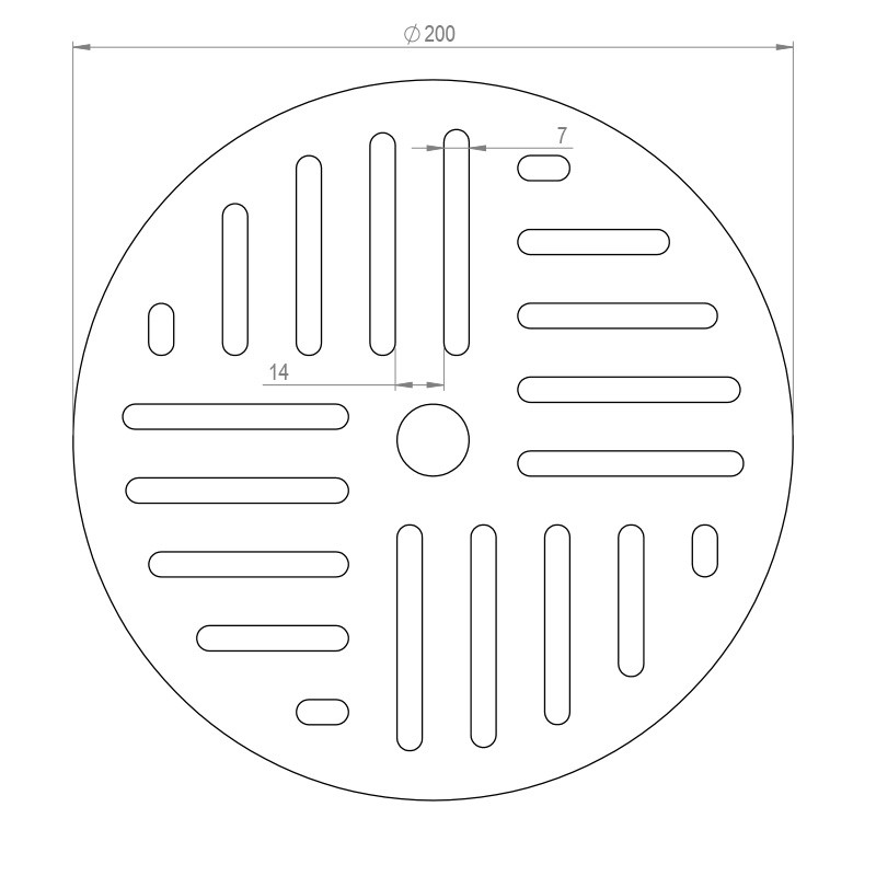 Griglia circolare in ghisa per camini, stufe a legna e focolari con diametro 200 mm e spessore 10 mm.