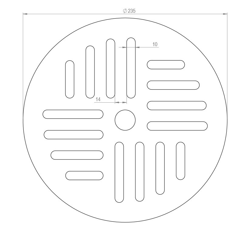 Griglia circolare in ghisa per camini, stufe a legna e focolari con diametro 235 mm e spessore 10 mm.
