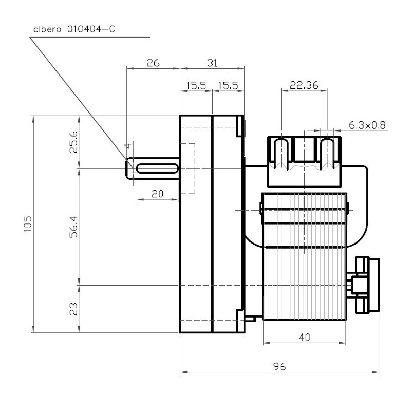 Serie 917, coppia nominale 16 Nm, assorbimento 47 Watt, velocità 8,5 rpm, rotazione oraria, diametro albero 10 mm, pacco lamellare da 40 mm, alimentazione 220 V AC - 50/60Hz.