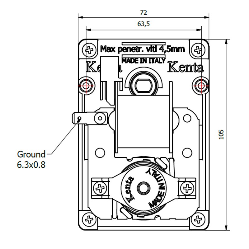 Dimensioni: Altezza totale 105mm, larghezza 72mm, profondità 96mm.
