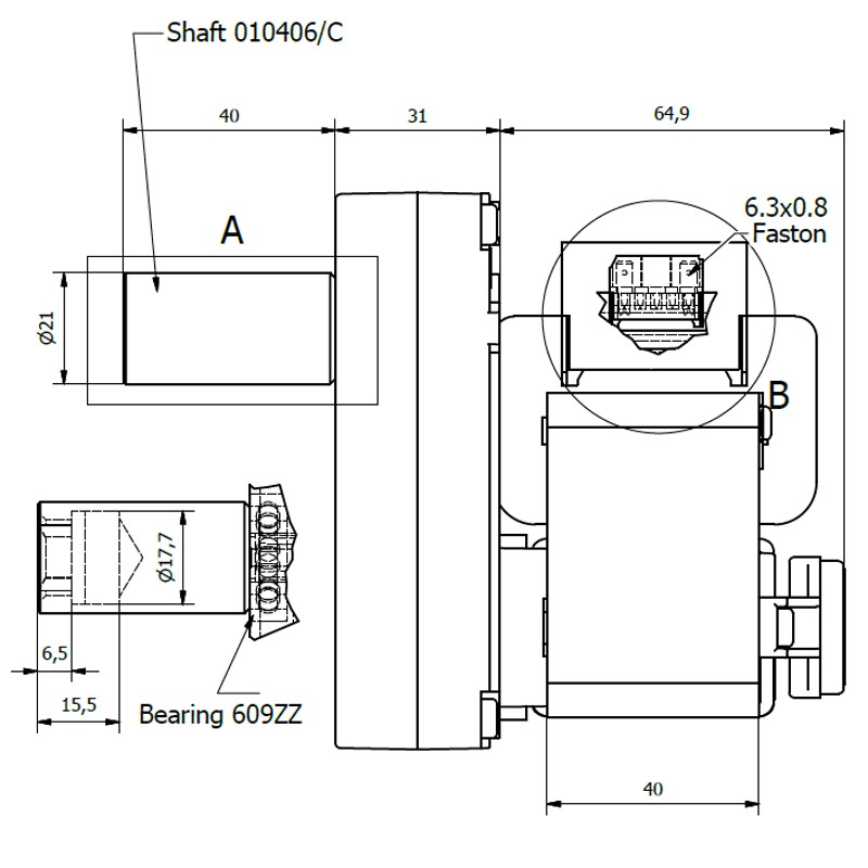 Caratteristiche motore elettrico: alimentazione 200 - 240V - 50/60Hz, potenza 47Watt, velocità di rotazione 2Rpm, senso di rotazione: oraria, coppia nominale 36 Nm.