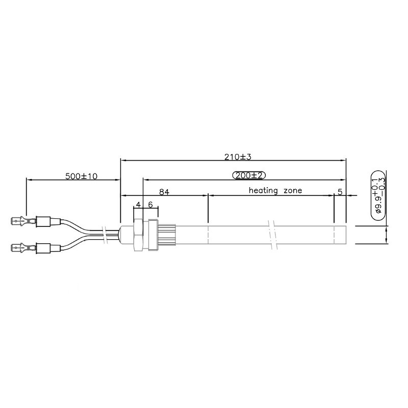 Esecuzione con raccordo filettato 3/8" GAS, diametro 9,9 mm, lunghezza totale 210 mm, lunghezza sottobattuta 200 mm, 300 Watt.