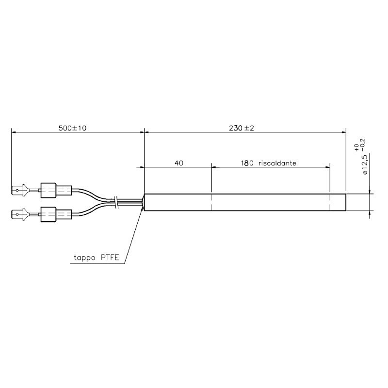 Esecuzione dritta, diametro 12,5 mm, lunghezza totale 230 mm, 320 Watt.