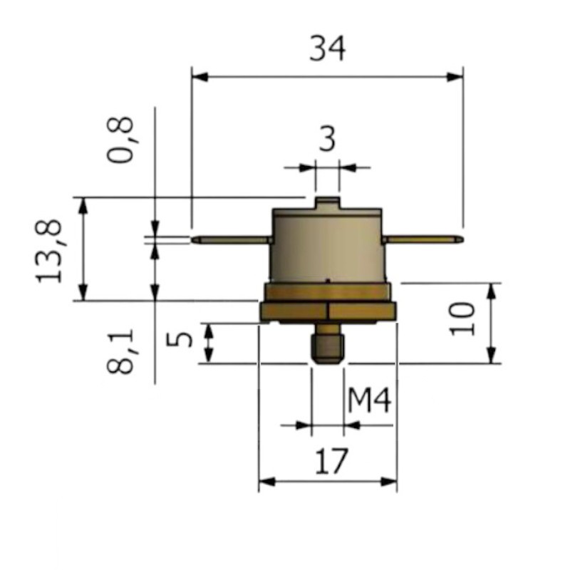 Termostato bimetallico con fissaggio a vite, filettatura 4mm.